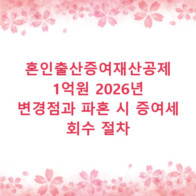 이혼의 경우는 사정이 다릅니다. 증여 당시 모든 요건을 충족했다면, 이혼 자체로 인해 바로 세금을 돌려내야 하는 건 아니에요. 하지만 조세회피를 목적으로 한 위장 이혼으로 판단되면 이야기가 달라집니다. 국세청은 이를 감시하고 있으며, 실제 서울중앙지법 판결에서 위장이혼이 인정되어 1억원이 넘는 증여세를 환수한 사례가 있습니다. 증여세 공제는 순수한 혼인·출산 의도를 전제로 하는 제도죠.