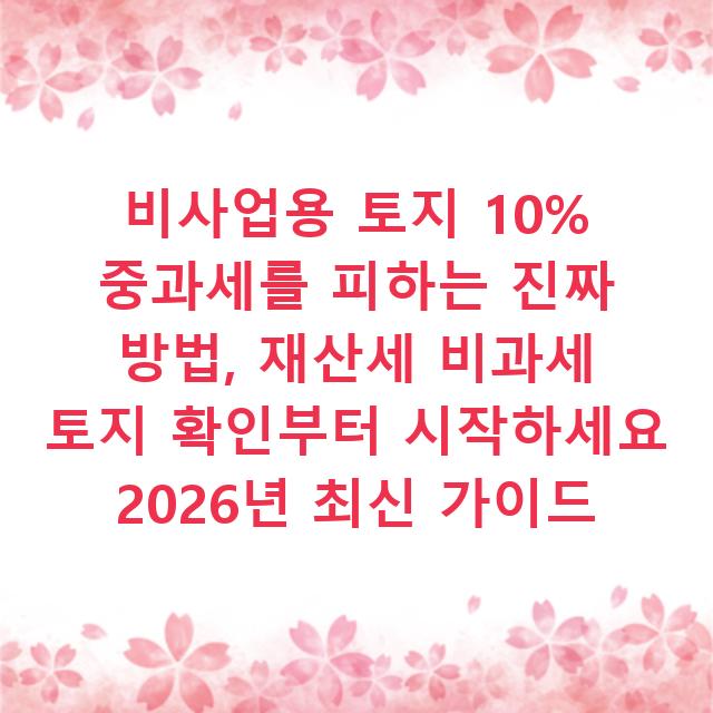 1. 비사업용 토지 중과세(10% 가산)는 단순히 농사를 짓지 않아서 발생하는 게 아니라, ‘재산세 종합합산과세’ 대상이 되어서 발생합니다. 재산세 과세 유형 확인이 모든 시작입니다.