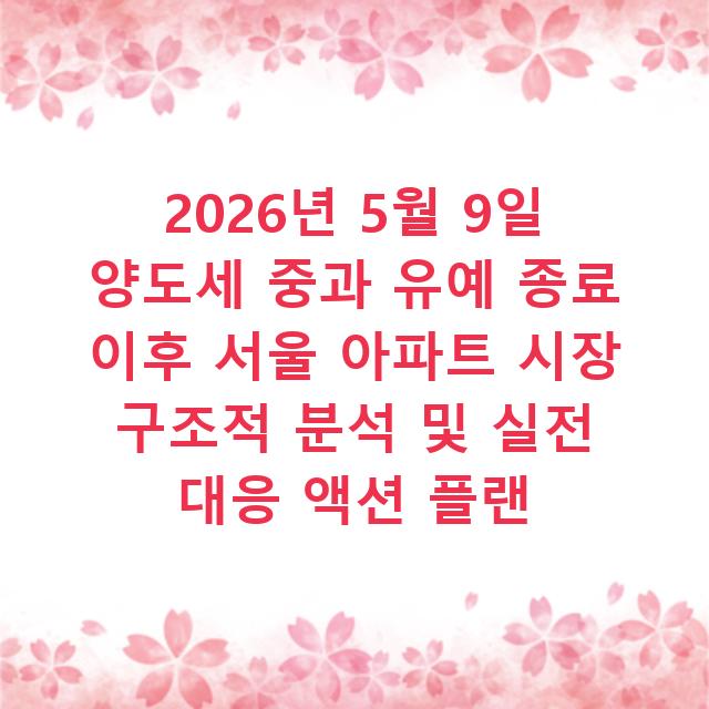 지금 필요한 건 뉴스 헤드라인의 재탕이 아닙니다. '양도세 중과 유예 종료'라는 거시적 사건이 서울의 구체적인 동네, 그리고 당신의 계좌에 미칠 미시적 영향력을 구조적으로 해부할 수 있는 프레임입니다. 단순한 시황 전달을 넘어서, 감정에 휘둘리지 않고 시장의 약점을 역으로 활용할 수 있는 구체적인 행동 매뉴얼이죠.