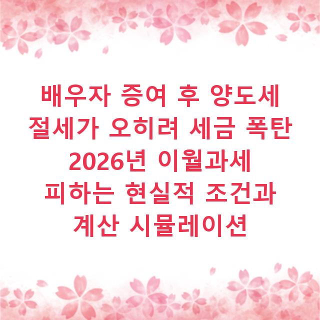 2. 2026년 현재 최대 함정은 공시가격 하락이다: 평균 3.2% 하락한 시장에서 이월과세 적용은 오히려 증여세+양도세 총액을 폭발시킬 수 있습니다. 공시가격이 20% 떨어진 지역에선 증여하지 않는 게 나을 수도 있죠.