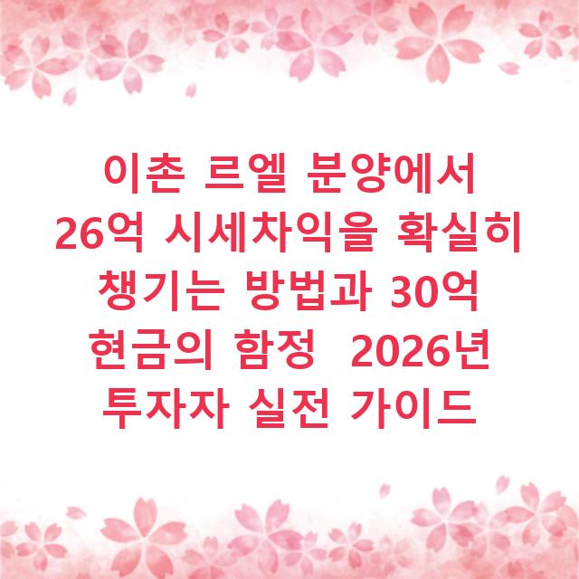 이런 관점에서 보면, 이촌 르엘 투자는 단순한 '로또 청약'이 아니라, 현금 유동성이라는 무거운 무기를 가지고 시장의 역설적 구조에 도전하는, 매우 선택적이고 전문적인 행위가 됩니다.